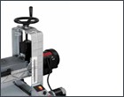 - Drum height is adjusted by turning a control handwheel.