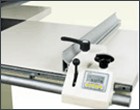 The extruded aluminum rip fence is equipped with a high precision digital readout for accurately controlling fence positioning.